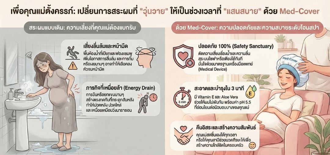การเคลื่อนย้ายผู้สูงอายุที่มีปัญหาการเคลื่อนไหวเพื่อไปสระผม คือสาเหตุหลักของการลื่นล้มและอุบัติเหตุในบ้าน เปลี่ยนเรื่องยุ่งยากให้เป็นเรื่องง่ายด้วย MED-Cover Shampoo Cap