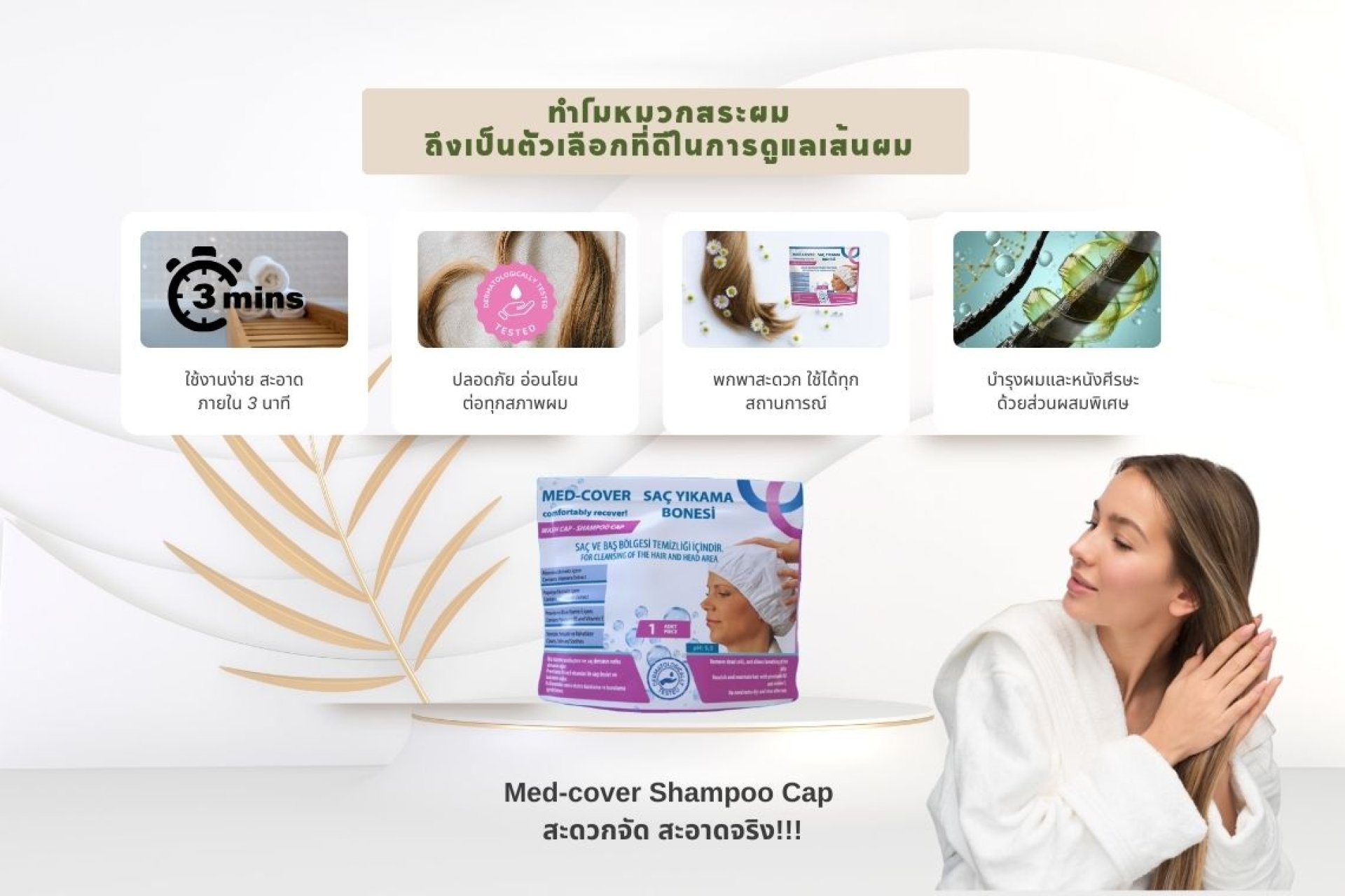 หมวกสระผม หรือ Med-Cover Shampoo Cap เป็นนวัตกรรมใหม่ที่ออกแบบมาเพื่อช่วยให้การทำความสะอาดเส้นผมสะดวก รวดเร็ว และไม่ต้องใช้น้ำ เหมาะสำหรับผู้ที่มีข้อจำกัด เช่น ผู้ป่วยติดเตียง ผู้สูงอายุ ผู้ที่เพิ่งผ่านการผ่าตัด หรือคนที่ต้องเดินทางบ่อย