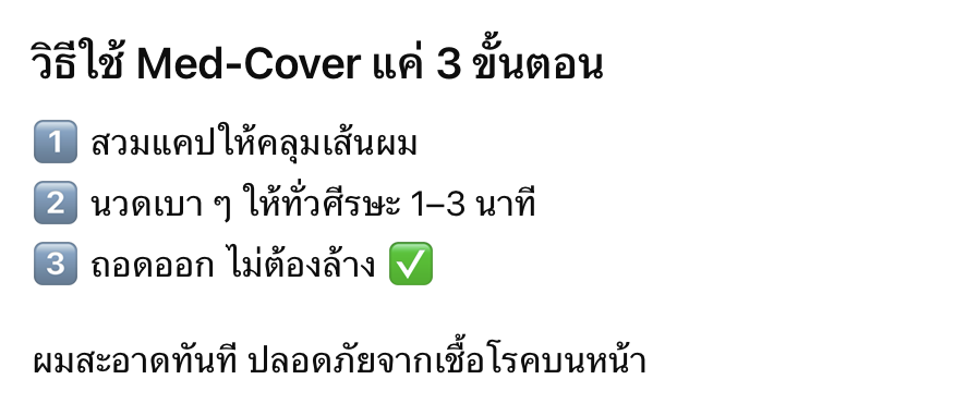 แผลหลังศัลยกรรมห้ามโดนน้ำ! ใช้แคปสระผมไม่ใช้น้ำ Med-Cover พร้อม CHG ฆ่าเชื้อ สะอาด ปลอดภัย เหมาะกับคนทำจมูก ตาสองชั้น ดูแลผู้ป่วยติดเตียง