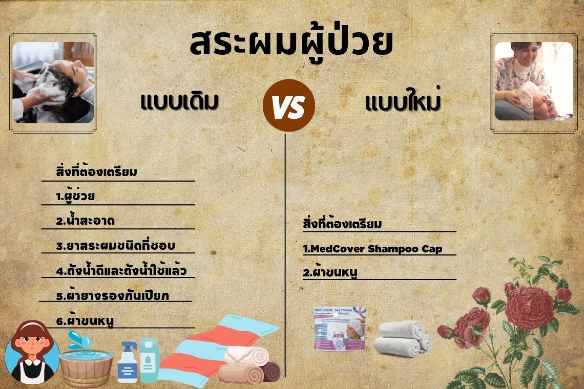 เรามาเปรียบเทียบการสระผมแบบเดิมและะการใช้หมวกสระผม MED COVER SHAMPOO CAP ให้ดูกันชัดๆค่ะ ชอบแบบไหน สะดวกแบบไหน ????