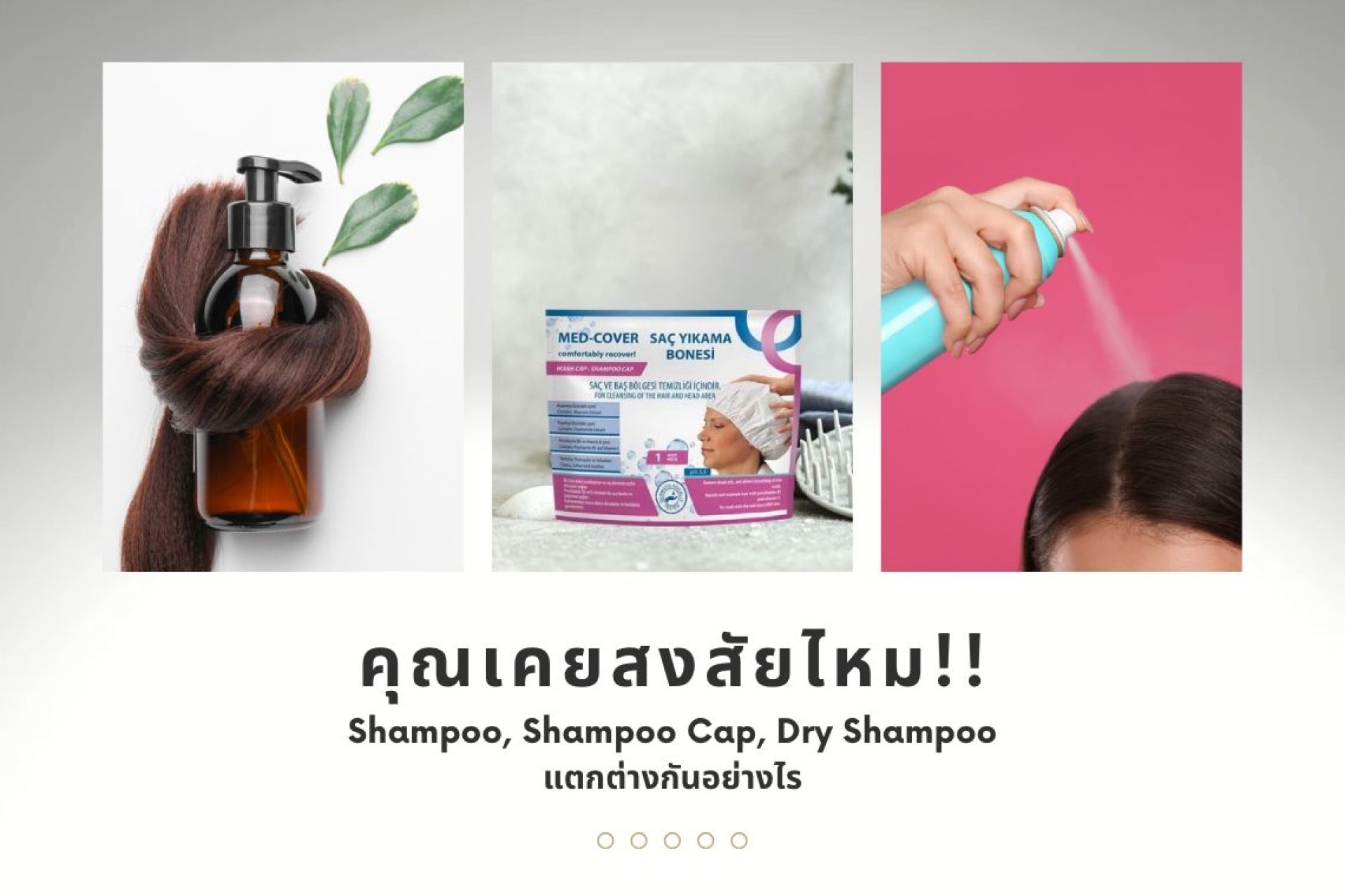 เปรียบเทียบ แชมพูปกติ แชมพูแห้ง และหมวกสระผม Med-Cover เพื่อให้คุณเลือกวิธีที่เหมาะสมที่สุด