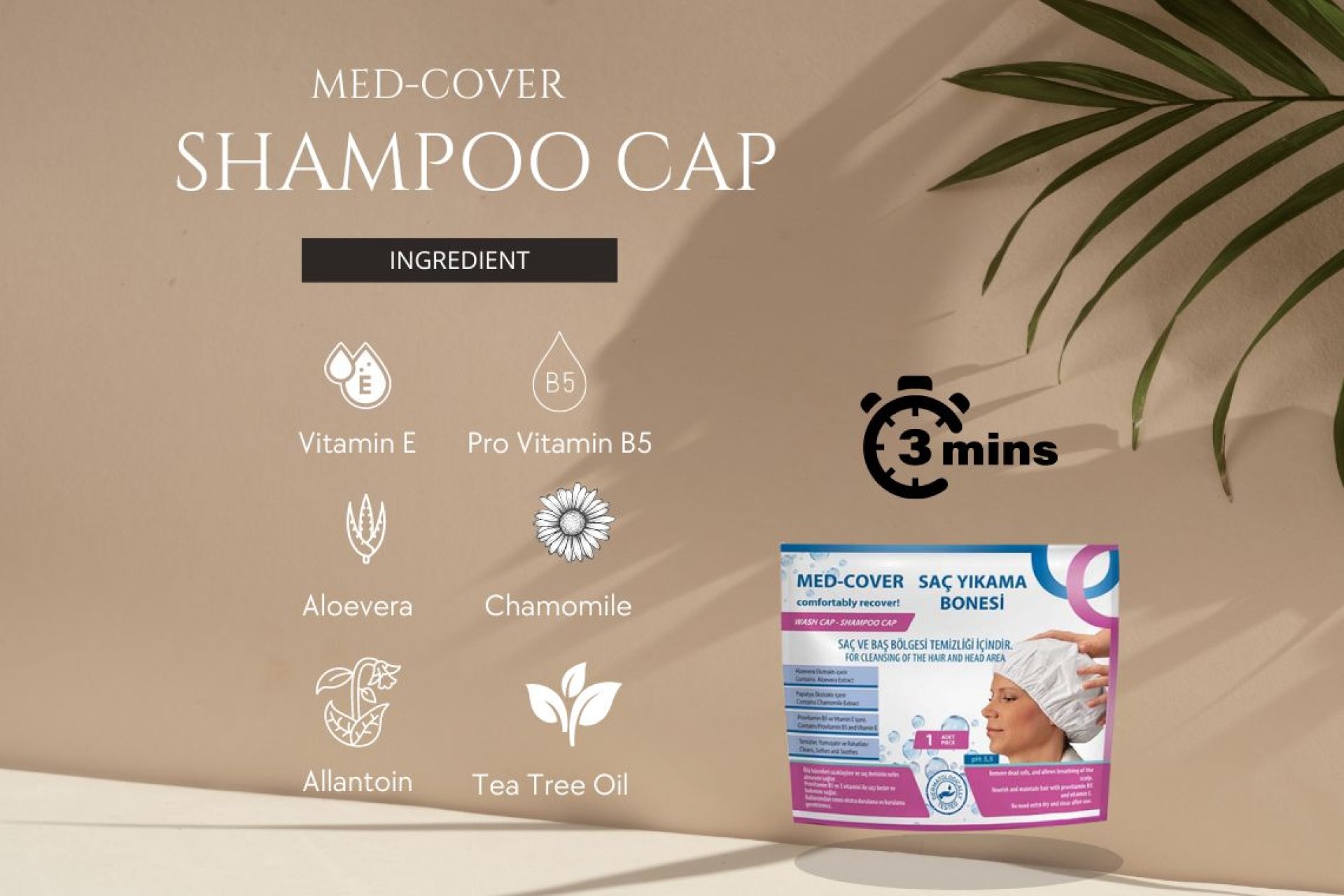 Med-Cover Shampoo Cap เป็นผลิตภัณฑ์ที่ออกแบบมาเพื่อทำความสะอาดและบำรุงเส้นผมอย่างมีประสิทธิภาพ โดยไม่ต้องใช้น้ำ ซึ่งเหมาะสำหรับผู้ที่มีความเคลื่อนไหวจำกัด เช่น ผู้สูงอายุหรือผู้ป่วยติดเตียง ด้วยส่วนผสมที่คัดสรรมาอย่างดี ทำให้ Med-Cover Shampoo Cap สามารถทำความสะอาดเส้นผมและหนังศีรษะได้อย่างมีประสิทธิภาพ